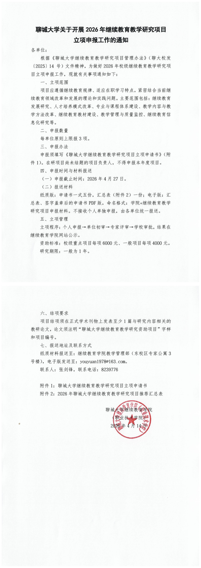 ok138cn太阳集团关于开展2026年继续教育教学研究项目立项申报工作的通知