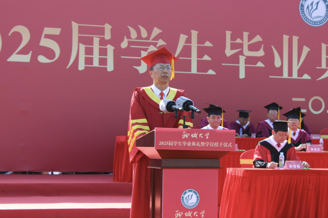 党委副书记、校长白成林以《踔厉奋发担使命 行稳致远启新篇》为题为2025届毕业生上“最后一堂课”。他首先代表学校向圆满完成学业的毕业生表示热烈祝贺和美好祝愿,向陪伴和支持他们成长成才的老师、家长及社会各界朋友致以崇高敬意和诚挚感谢。他表示,今天的毕业典礼既是青春的加冕礼,更是人生的出征式,希望同学们怀揣星辰大海的理想,迈出风雨兼程的脚步,与祖国共进,和时代同行,让“青春浪花”在时代大潮中“奔涌向前”。他对即将扬帆远航的学子们殷切寄语:一要永葆赤子之心,志存高远,以信仰为舵锚定青春航向,努力在推动强国建设、民族复兴的生动实践中放飞青春梦想;二要勇立创新潮头,主动学习新知识、掌握新技能,以开拓之笔解答时代命题,努力成为可堪大用、能担重任的栋梁之材;三要弘扬实干精神,攻坚克难,精益求精,用汗水和智慧创造价值,以奋斗足迹镌刻青春印章。